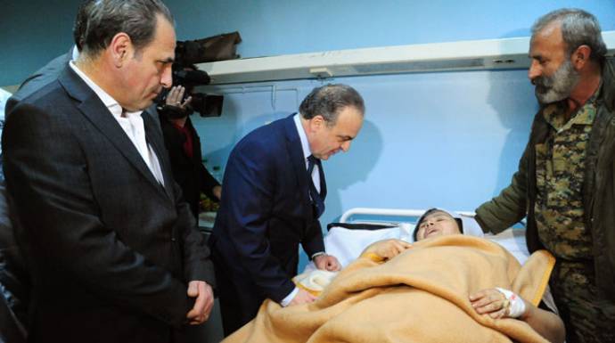 وقد زار رئيس الوزراء، في حكومة النظام، عماد خميس، الجرحى الذين أُصيبوا جراء القذيفة.