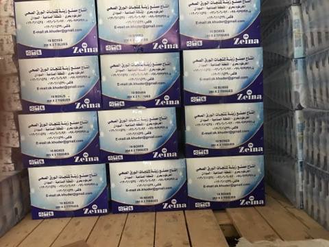 وأكد محدثنا أن إنتاجه اليومي يتجاوز الـ1200 طرد بشكل يومي مباعة بشكل تقريبي وكل طرد يحوي 24 علبة بعبوات وأحجام مختلفة، لافتاً إلى أن لديه 10 عمال سوريين وحوالي 40 عاملاً وعاملة سودانيين، وهناك مكنتان تعملان بشكل متواصل وتم مؤخراً إضافة ماكينة لانتاج مناديل الجيب يقوم على تشغيلها حوالي 20 عاملاً.
