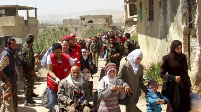 عاد نحو 26 ألف شخص إلى بلداتهم بعدما استعادت حكومة النظام السيطرة عليها، حسبما أفاد خالد حبوباتي، رئيس هيئة الهلال الأحمر العربي، في مؤتمر صحفي مشترك مع الزعتري في دمشق.