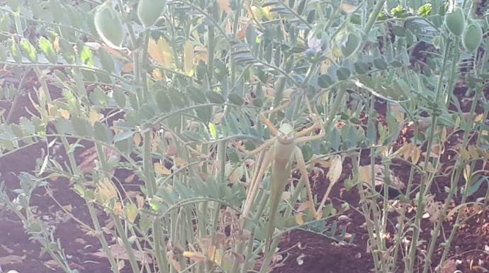 هاجمت حشرة "الجراد" محاصيل القمح والحُمّص في أرياف إدلب وحماة الخاضعة لسيطرة فصائل المعارضة السورية، الأمر الذي جعل المحاصيل الزراعية تتراجع بشكل كبير مقارنة بالسنوات السابقة رغم لجوء المزارعين إلى بخ المحاصيل الزراعية للقضاء عليها.