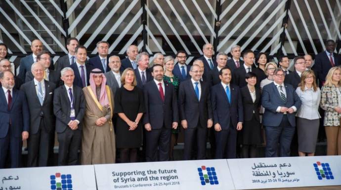 وشكك المبعوث الروسي فلاديمير تشيجوف في جدوى النهج الذي يتبعه الاتحاد الأوروبي بأن يركز الغرب على المساعدات الإنسانية فقط دون أن يقدم أي أموال لإعادة إعمار سوريا طالما لم يتقاسم رأس النظام السوري بشار الأسد السلطة مع المعارضة.