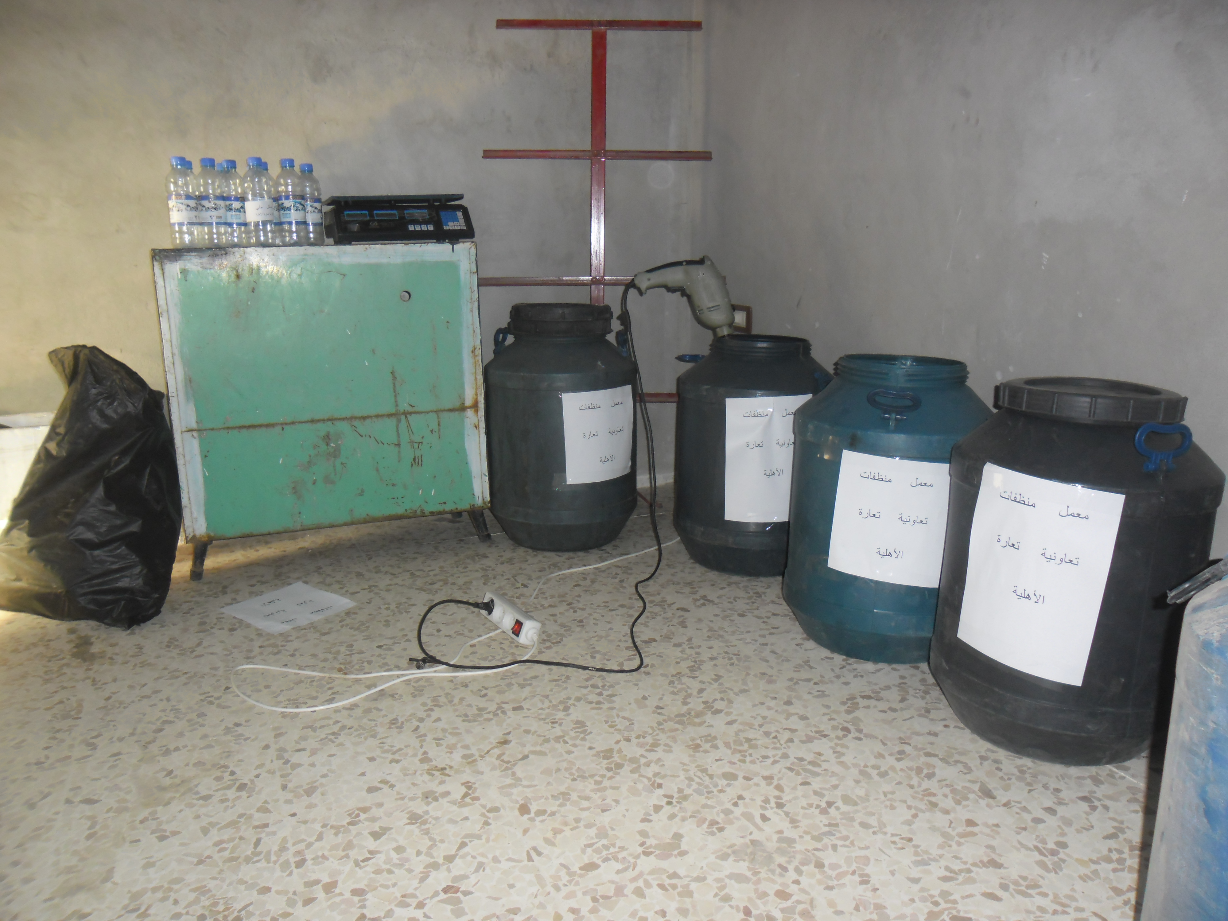 ولفت "مراد" إلى أنه "وبعد نجاح عمل التعاونية الاستهلاكية ومن خلال متابعة حاجة السوق تم إنشاء مشروع لصناعة مواد التنظيف، وتمت الاستعانة بأحد الخبرات من أبناء البلدة في هذا المجال، وبرأس مال قليل لم يتجاوز (25000) ألف ليرة سورية".
