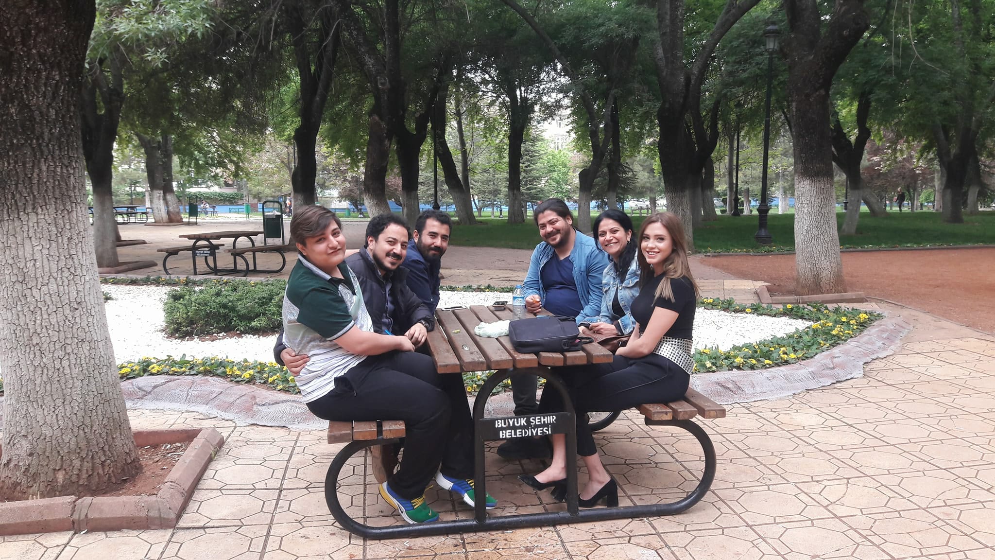 عائلات وأفراد وأصدقاء يفترشون الأرض في الحديقة أو يجلسون على الطاولات، وأغلبهم من السوريين اللاجئين إلى عنتاب، يحبون الموسيقا والراحة التي تقدمها لهم بدون أية تكلفة، فهم لا يستطيعون الجلوس في المقاهي ولا الذهاب إلى المسارح أو النوادي.