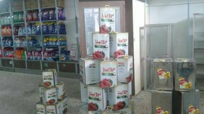 خل تفاح زجاجة 500 مل بسعر 210 ليرة سورية، فول بلدي 1كغ بسعر 450 ليرة سورية. رب البندورة 1350غ بسعر 825 ليرة سورية.).