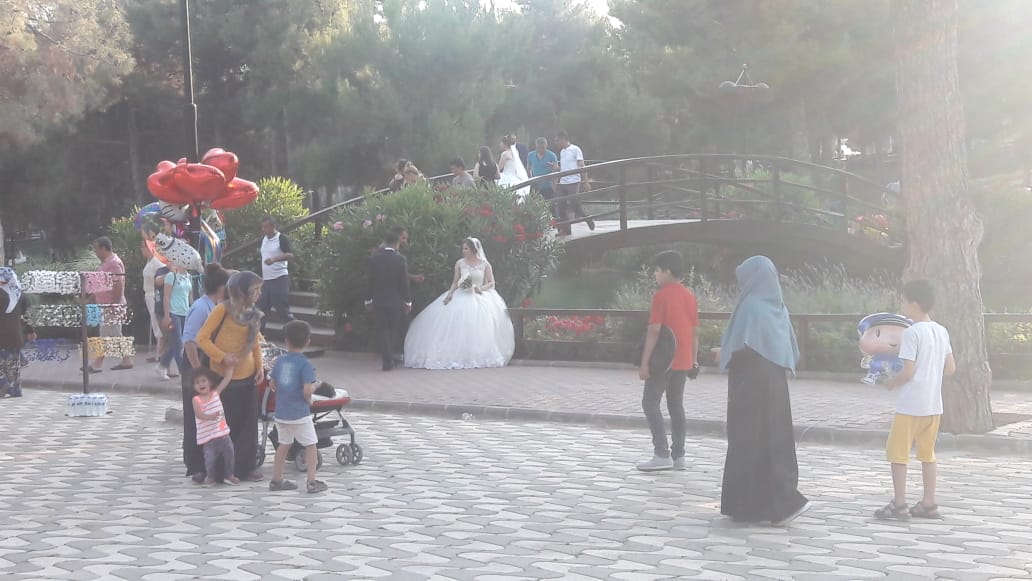 زيارة الحدائق في تركيا أصبحت تقليداً بالنسبة للعرسان، يخلّدون بها لحظات ما قبل الزواج بالتقاط الصور وتوديع الأصدقاء والصديقات، بمظاهر احتفالية لطيفة من المقربين.