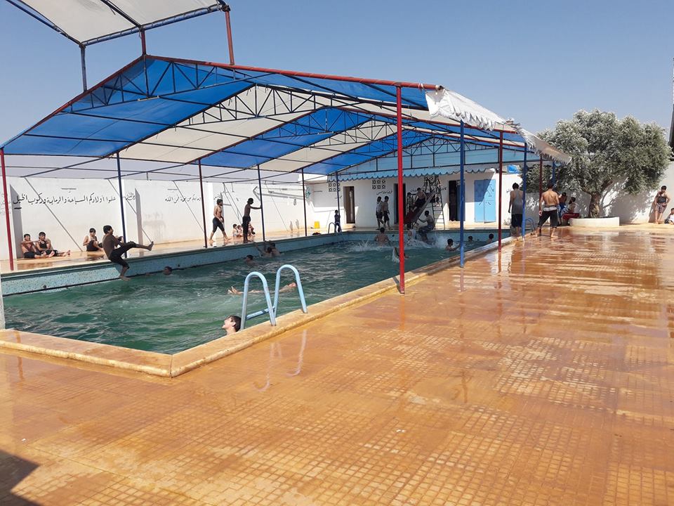 بالصور: برك السباحة ملاذ أهالي إدلب من حر الصيف