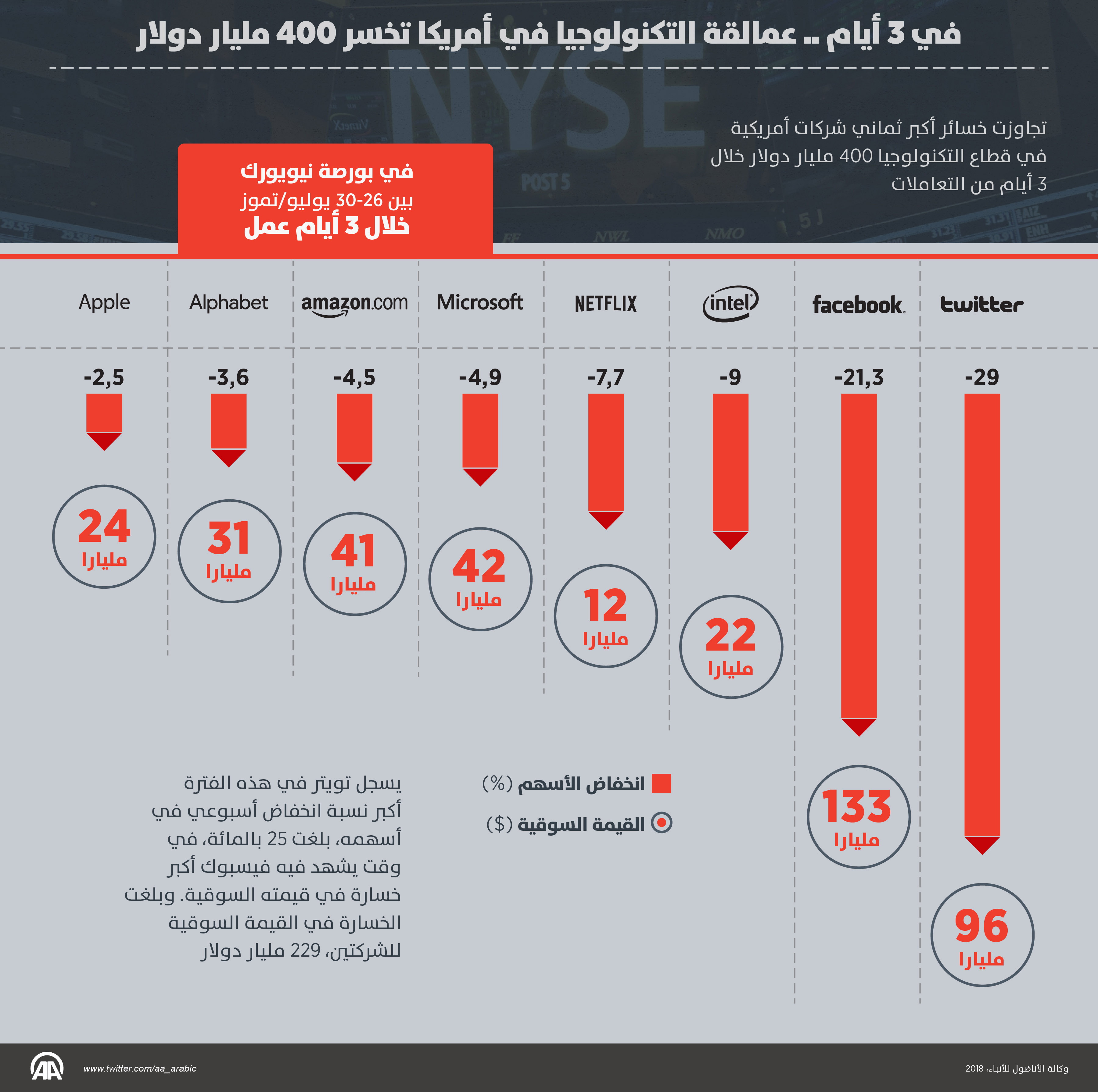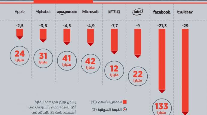 انفوغرافيك: في 3 أيام، عمالقة التكنولوجيا في أمريكا يخسرون 400 مليار دولار