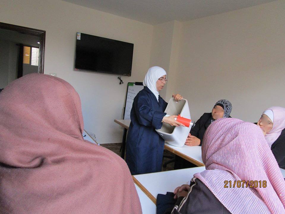 وأضافت محدثتنا أنها درّبت 25 طالبة في مركز التدريب المهني بمنطقة "حكما" في إربد بدعم من منظمة "جي آي زد" وحصلت على شهادة المزاولة بعد خوض الامتحان الخاص بالمهنة مما جعلها مؤهلة لافتتاح مركز خاص بها وبزميلاتها. وتمكنت فعلاً من افتتاح ورشة صغيرة، وكانت هذه الورشة التي اقتصرت على العنصر النسائي فرصة لأن يدخلن بيوت العائلات في المدينة حتى ولو لم يكن رب العائلة موجوداً.