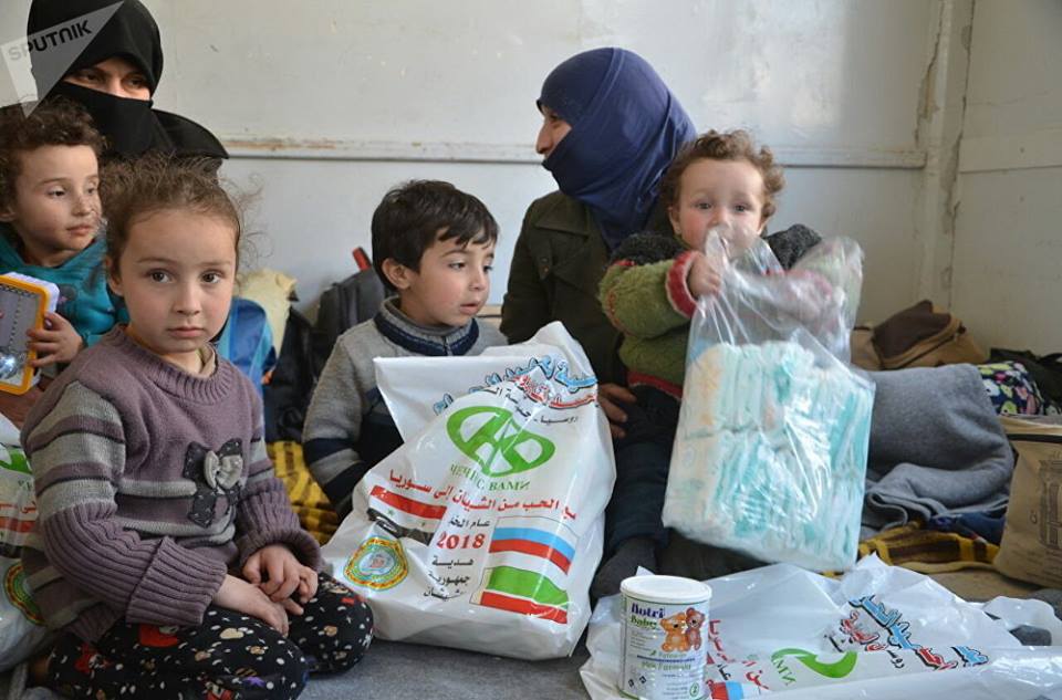 الوكالة قدمت لتقريرها بالحديث عن الدور الإنساني الروسي في سوريا. وبحسب الوكالة، فقد تمكنت الجمعية من تشغيل مخبز آلي يقوم بإنتاج وتوزيع الخبز مجاناً للعائلات المنكوبة وبكميات كبيرة يومياً، ويحمل شعار "روسيا معكم.. مع الحب".