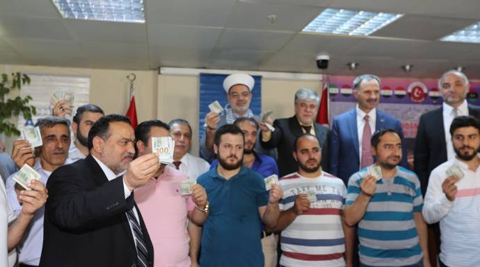 رجال أعمال سوريون يحولون الدولار إلى ليرة تركية في وقفة داعمة باسطنبول