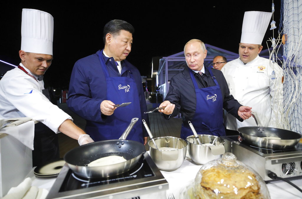 قدم الرئيس الروسى فلاديمير بوتين لنظيره الصينى شى جين بينغ فطائر روسية، في استعراض للعلاقات الشخصية الدافئة بين الزعيمين.