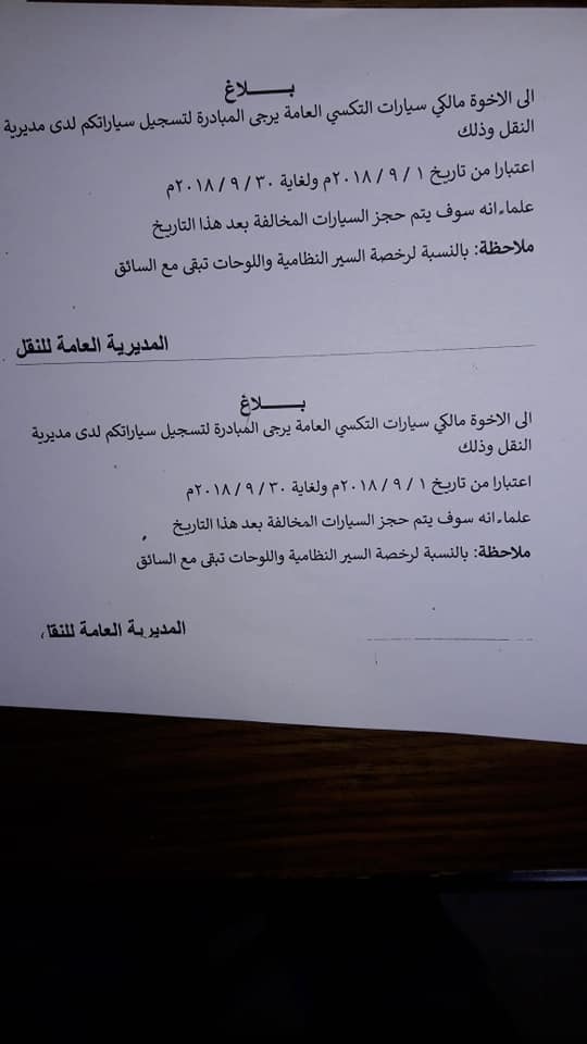 ولتنفيذ خطة واسعة تهدف إلى ترسيم جميع السيارات في مدينة إدلب، لجأت حكومة الإنقاذ إلى حملة موسعة بداية العام الحالي واستهدفت سيارات النقل العام حيث تم تحديد الأول من آذار الماضي موعداً لبداية الحجز على الفانات والسرافيس ثم تأجل الموعد بسبب الظروف الأمنية إلى 18 أيار من العام نفسه. بالنسبة لسيارات التاكسي لاتزال هناك عدة أيام لحين موعد الحجز والذي حددته الحكومة بـ 30 أيلول الجاري.