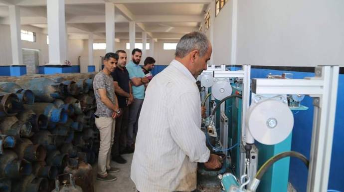بالصور: تعرف على أول معمل لتعبئة الغاز في مدينة الباب