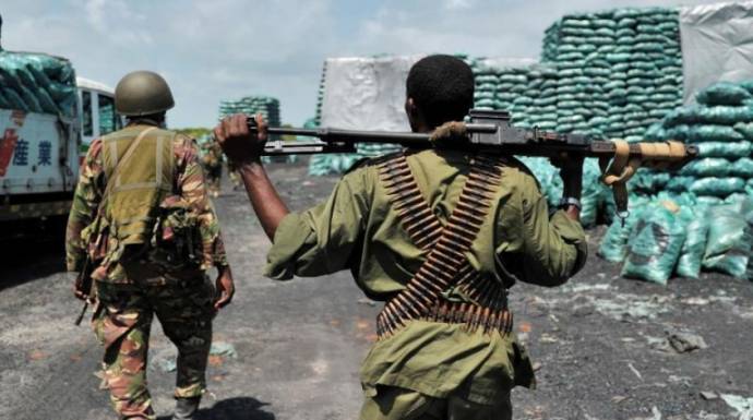 وتخوض حركة الشباب الموالية لتنظيم القاعدة تمردا ضد الحكومة الصومالية المدعومة من الأسرة الدولية ومن قوة الاتحاد الإفريقي في الصومال (أميصوم) التي تضم عشرين ألف عسكري.