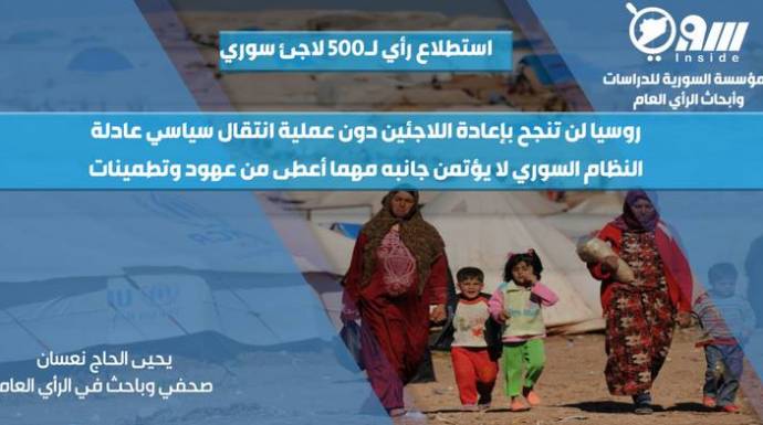 1- برأيك هل ستنجح روسيا بإعادة اللاجئين السوريين أو القسم الأكبر منهم دون عملية انتقال سياسي توقف الحرب وتضمن تغيير حقيقي في بنية النظام الحالي في سوريا؟