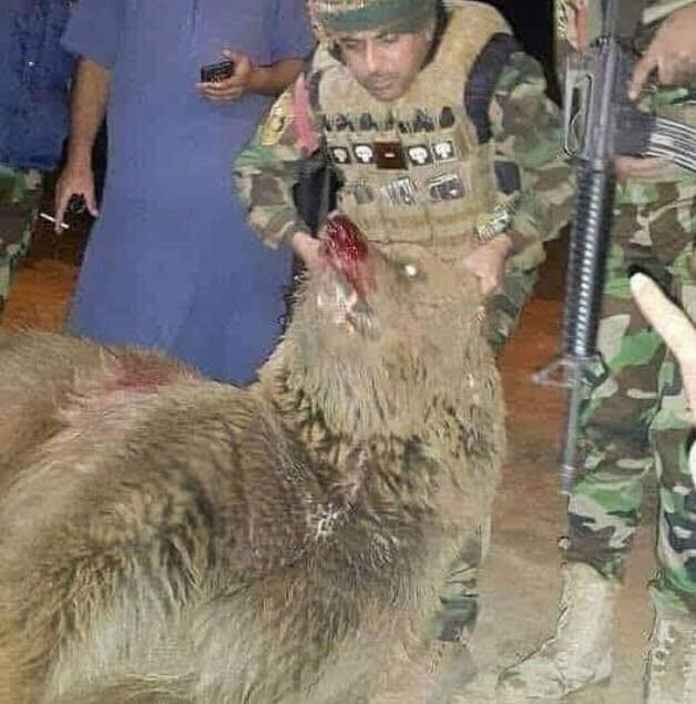 تداول مهتمون بالبيئة صوراً لحيوان "الدب البني السوري" المهدد بالإنقراض مقتولاً على يد قوة أمنية تابعة للفوج التاسع في محافظة الأنبار غربي العراق بعد مهاجمته أراضٍ زراعية.