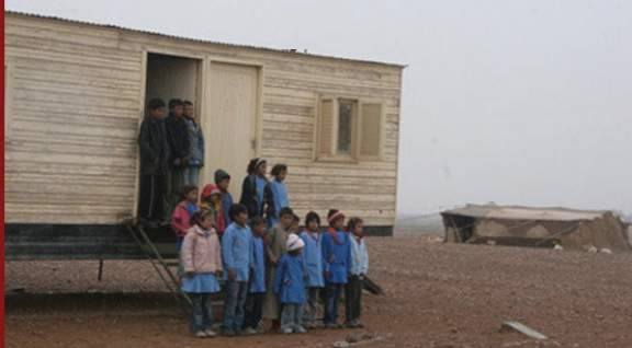 كما تم افتتاح مدرسة ثابتة لكل مجتمع سكني في البادية يحتوي على 10 أطفال في سن التعليم وفق معايير الخريطة المدرسية المعتمدة من وزارة التربية. وبذلك تم استيعاب كافة الأطفال الذين هم في سن التعليم.