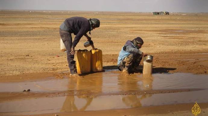 ويعيش مخيم الركبان منذ 4 تشرين الأول 2017 حالة حصار كبيرة تفرضها قوات النظام المتمركزة في نقطة "حاجز ظاظا" الواقعة على طريق دمشق-بغداد. ونشأ المخيم عقب إغلاق الحدود من طرف الحكومة الأردنية أمام مئات النازحين الهاربين من المعارك. ويضم حالياً قرابة 70 ألف شخص يعيشون أوضاعاً كارثية لا تُحتمل.