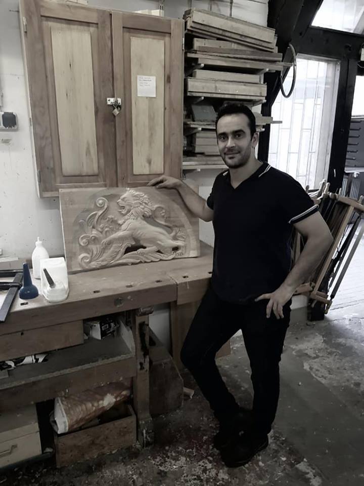 ولد "فاضل الخضر" في منطقة الهُلك التي تبعد 4 كيلو عن قلب حلب، ولم يتمكن من إكمال تعليمه بل التحق بورشة والده لحفر الموبيليا، ولم يكن قد تجاوز الرابعة عشرة، وروى الفنان الشاب لـ "اقتصاد" أنه أحب مهنة الحفر على الخشب منذ نعومة أظافره وعندما شب عن الطوق بدأ يصمم موديلات لغرف نوم وغرف جلوس وغيرها من قطع الأثاث المنزلي، وعند اندلاع الحرب اضطر للجوء مع عائلته إلى تركيا وهناك عمل في مصنع "أوليتاج" بولاية "غازي عنتاب" حيث دأب-كما يقول- على تصميم موديلات تجارية لتأمين قوت يومه، وبعد فترة يمّم شطر أوروبا في رحلة لجوء صعبة من اليونان وهنغاريا حيث تم القبض عليه وسجنه لعشرة أيام لأنه لم يبصم، وبعد الإفراج عنه وصل إلى ألمانيا في العام 2015 ليسكن في مدينة köln الواقعة في ولاية شمال الراين، وهناك حصل-كما يقول- على فرصة عمل في ورشة للنجارة ضمن برنامج الإندماج الموجه للاجئين، وتم منحه منذ أشهر محترفاً صغيراً ليمارس فيه الحفر على الخشب، وهي الحرفة التي رافقت طفولته ويفاعته.