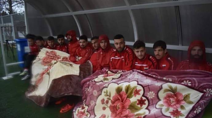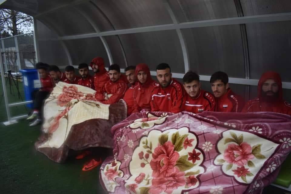 أثارت صورة تم التقاطها لمنتخب كرة القدم الأولمبي التابع للنظام، وهو يلتحف بـ "الحرامات" من شدة البرد، خلال مشاركته في مباراة ودية مع المنتخب الأولمبي الإيراني في طهران، أثارت الكثير من ردود الأفعال الساخرة على وسائل التواصل الاجتماعي، والتي وصفت الصورة بأنها مخزية وتسيء إلى سمعة المنتخب وسوريا على حد سواء.