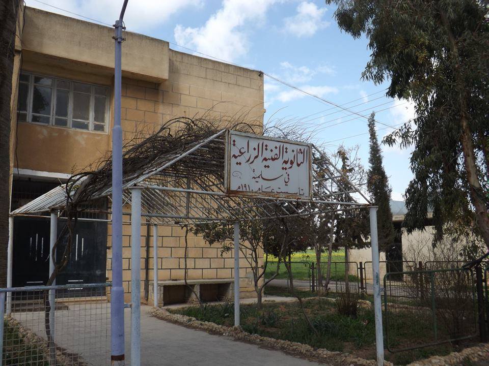 وحول المناهج التدريسية التي يتلقاها طلاب المدرسة أوضح محدثنا أن المدرسة تدّرس كل ما له علاقة بالزراعة كالـ "البستنة الشجرية "و"المحاصيل الحقلية" و"نباتات زينة" و"الغابة" و"تربية النحل"و"آلات زراعية" و"الري" وحشرات" وآفات زراعية إضافة لمواد اللغة العربية والأجنبية والثقافة والتربية الإسلامية والمحاسبة والكيمياء. ويوجد في الثانوية-كما يقول- مبقرة ومدجنة وغابة صنوبر ومخابر جيدة كـ (مخبر الكيمياء) و(مخبر الحشرات). والآن تم تخصيص قسم منها لكلية الزراعة والعمارة.