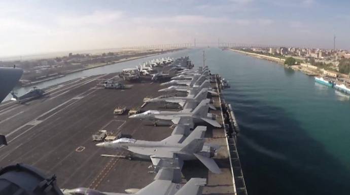 لم تصل بعد حاملة الطائرات يو إس إس أبراهام لينكون ومجموعتها القتالية إلى مضيق هرمز، في الخليج العربي الذي يمر عبره ثلث النفط الذي ينتقل عبر البحر.