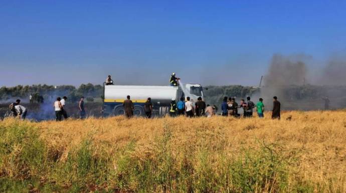 حمّل ناشطون النظام مسؤولية الحرائق التي تطال المحاصيل الزراعية في أرياف حماة وإدلب، موضحين أن النظام يتعمد إطلاق القذائف على المزروعة بالقمح والشعير، وذلك لحرمان الفلاحين من المواسم المنتظرة والمبشرة بعد موسم الأمطار الشتوية الجيد.