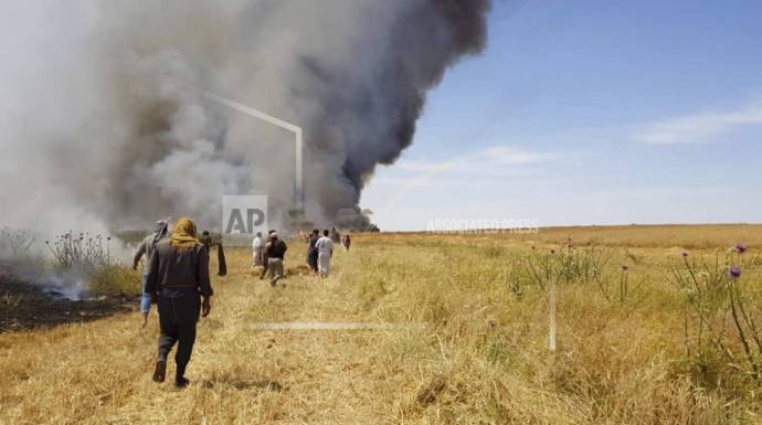 وفي محافظة الرقة شرقي سوريا، واجه مزارعون النيران المشتعلة بقطع قماش وأكياس وبراميل مياه. تصاعد الدخان الأسود من أكوام من القش المحترقة فوق الحقول.