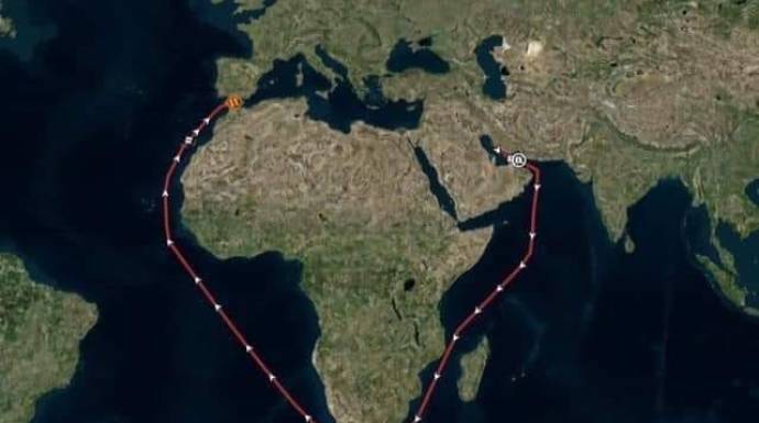 وجاء في منشور الصحفي الموالي: "الطريق التي قطعتها ناقلة النفط الإيرانية التي تم ايقافها اليوم في مضيق جبل طارق للوصول للسواحل السورية.. صورة تظهر مدى صعوبة تأمين المشتقات النفطية في ظل الحصار.. وكذلك تظهر وفاء وصدق الحليف الإيراني في علاقته مع سورية".