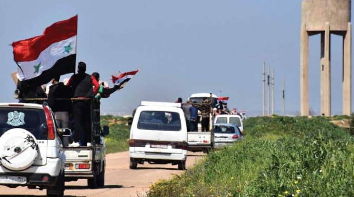 وتريد حكومة النظام فيما يبدو إظهار أن هذا الوضع يتغير حيث رافق جيش النظام يوم الأحد حوالي ألف شخص من السكان السابقين، الذين فروا إلى أجزاء أخرى من سوريا، أثناء عودتهم إلى المدينة حيث احتشدوا في الشوارع للاحتفال.