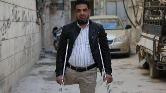 وعبّر النازح القادم من تدمر عن أمله بتركيب طرف صناعي لقدمه المبتورة من أعلى الركبة وهو غير متوفر في الباب؛ لافتاً إلى أن بتره من أول الساق اليمنى "مسح مع الحوض" ولذلك هناك صعوبة في تركيبه، مشيراً إلى أنه ركّب من قبل طرفاً ولكنه كان ثقيل الوزن ولم يتأقلم معه.