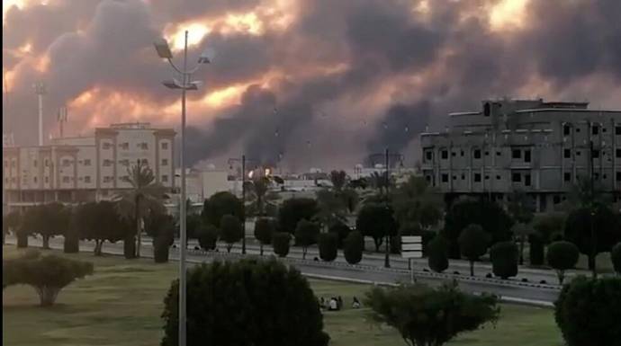 وقال المتحدث في بيان "باشرت فرق الأمن الصناعي بشركة أرامكو حريقين في معملين تابعين للشركة بمحافظة بقيق وهجرة خريص نتيجة استهدافهما بطائرات بدون طيار (درون)، حيث تم بتوفيق الله السيطرة على الحريقين والحد من انتشارهما، وقد باشرت الجهات المختصة التحقيق في ذلك".