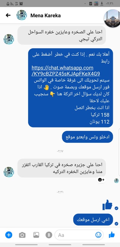 وسرد الراوي قصة غرق قارب في البحر كان على متنه عشرات اللاجئين وكان لفريقه -كما يقول- دور بإنقاذ من نجا من الغرق، ففي الثالث من تشرين الثاني عام 2017 وصل إلى غرفة عمليات الفريق نداء استغاثة من قارب جاء فيه عبارة "غرقنا ، متنا" فقط، ولم يكن الفريق يعرف أي معلومات أو تفاصيل عن القارب فقط موقعه وكلمات الاستغاثة، وتم إبلاغ خفر السواحل اليونانية ليتضح في اليوم التالي إنقاذ 20 شخصاً وموت وغرق ثمانية بينهم أطفال، وهذه الحادثة المأساوية–بحسب المصدر- كان لها الأثر الكبير على معنويات الفريق مما زادهم عزيمة وإرادة وإصراراً على الاستمرار في إنقاذ هذه الأرواح البريئة وخاصة الأطفال منهم.
