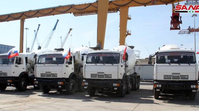 وأضافت الوكالة، أن الدفعة الأولى التي تم استلامها في مرفأ طرطوس، تضمنت ثماني جبالات بيتونية متحركة ومجبلين بيتونيين ثابتين وحفارة سبور مجنزرة وهي جزء من العقد المبرم بين الجانبين عام 2018.