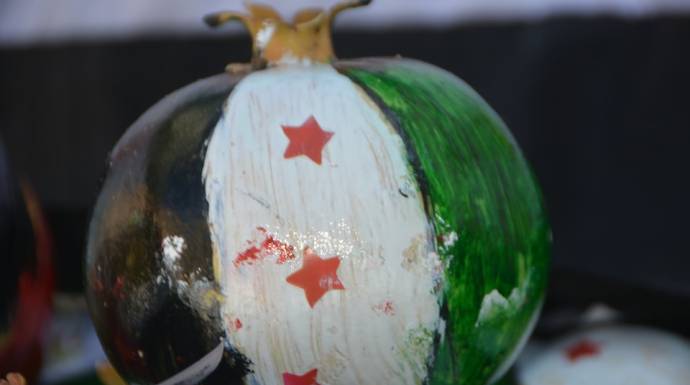 المزارع "عمر قنديل" من مدينة دركوش، شارك في المهرجان، لكن على طريقته الخاصة، حيث قام برسم ثلاث رمانات على صاروخ عنقودي كانت قد قصفت به قوات الأسد المدينة، في وقت سابق، كاتباً لافتةً معلقةً عليه، وفيها العبارة التالية: "من أدوات قتله نصنع الحياة".