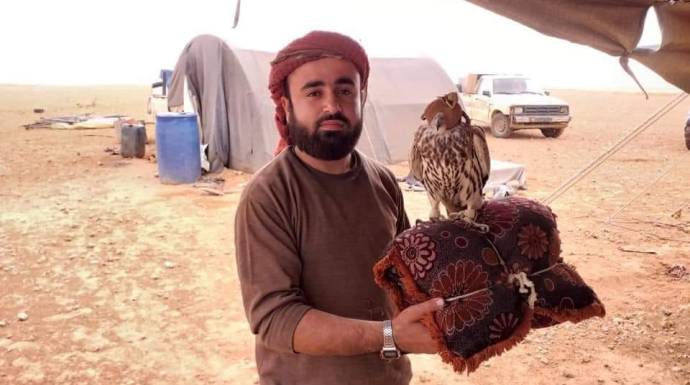 وأردف قائلاً: "منهم من يمارس حرفته في محيط المنطقة ومنهم من يغادر نحو منطقة (الحماد) في البادية السورية التي تشكل ممراً مثالياً لطيور الصقر المهاجرة أثناء رحلتها من أوروبا إلى إفريقيا".