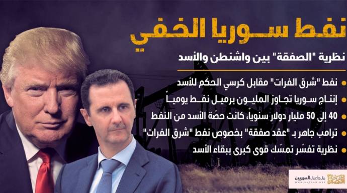 ويخلص "د. الحمدان" إلى أن الأسد عقد صفقة مع ترامب، من وراء الكواليس، أو ربما فرض ترامب تلك الصفقة على الأسد. لكن باختصار، يبدو أن الأسد، حسب "د. الحمدان"، باع نفط "شرق الفرات" للأمريكيين، كما سبق وباع الساحل لروسيا.