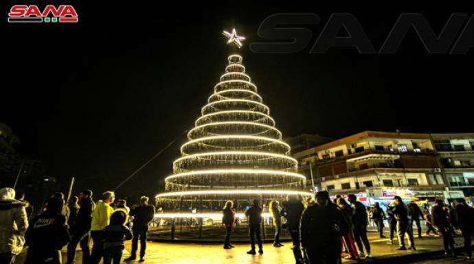 تناقل نشطاء صورة عبر مواقع التواصل الاجتماعي، تظهر شجرة عيد الميلاد الضخمة، في ساحة العباسيين بدمشق، وهي مُعتمة، بعد انقطاع الكهرباء عنها.