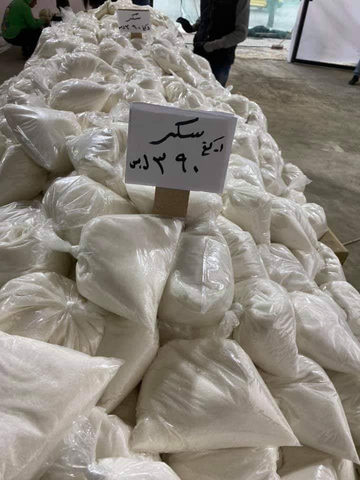وبعد الإعلان عن بدء افتتاح الحملة يوم الأحد قامت بعض الصفحات بنشر صور للبضائع المعروضة في المجمع وهي عبارة عن بعض أنواع الخضار والمواد التموينية ومن بينها السكر مما استفز الكثير من المعلقين.