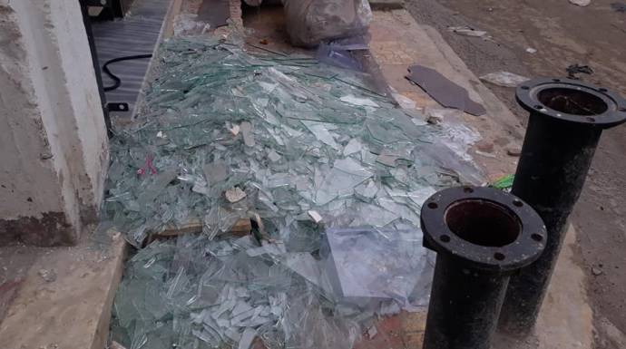 يقول لـ "اقتصاد": "دخلت الشظايا إلى المتجر وتسببت بتخريب معظم معدات العمل كما تسبب الانفجار بتكسير جميع الواجهات كما ترى مع تفتت البلور".