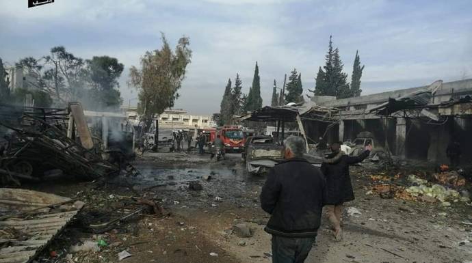 وعشية دخول الهدنة الحالية حيز التنفيذ أدى استهداف مماثل لسوق مدينة بنش إلى سقوط 4 شهداء وعدد من الجرحى.