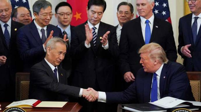 وقع الرئيس الأمريكي دونالد ترامب اتفاقا تجاريا الأربعاء مع الصين من المتوقع أن يعزز الصادرات من المزارعين والمصنعين الأمريكيين ويهدف لتهدئة التوترات في النزاع الطويل بين القوتين الاقتصاديتين.