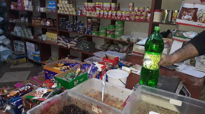 بسرعة فائقة وكثير من الأمل، يعيد "أبو عبدو" ترتيب البضاعة التي تم تفريغها مؤخراً على خلفية القتال الذي اندلع بالقرب من الطريق الدولي، إلى رفوف متجره، وسط مدينة بنش.