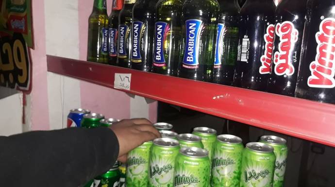 لم يعرض "أبو محمد" الكثير من الأصناف. يقول إنه يبيع بعض أنواع الخضار الضرورية مثل البطاطا والبندورة والبقوليات. بينما حوت بعض الرفوف فواكه رخيصة الثمن مثل البرتقال والتفاح.