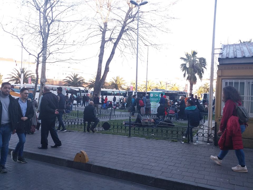 ومن يتجول في ساحة "أكسراي" والتي تقع في مركز إسطنبول، يلاحظ انتشار "السماسرة" بين المهاجرين داخل الحديقة الكبيرة والتي هي نقطة تجمع وانتظار الحافلات التي ستقل المهاجرين نحو ولاية أدرنة الحدودية مع اليونان.