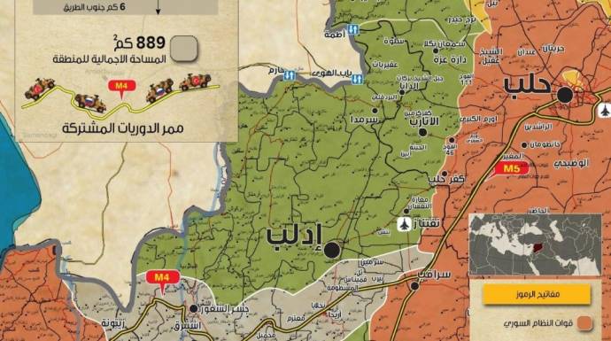 وقال الوزير التركي: "جنوب الطريق الدولي "M4" سيخضع للرقابة الروسية وشماله سيكون تحت رقابتنا". في إشارة إلى طريق "حلب – اللاذقية" الدولي، الذي يمر جزء منه في المناطق الخاضعة لسيطرة المعارضة.