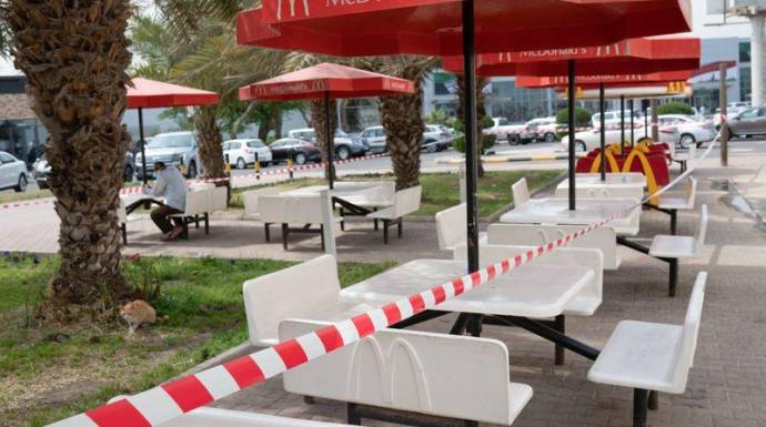 (الصورة: مطعم مغلق في الكويت بسبب إجراءات مكافحة كورونا)