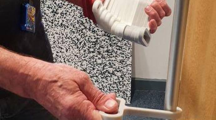 يقول بروكس "تلقينا بالفعل طلبا من جهاز الصحة الوطنية في ويلز لتصميم أداة لدفع الأبواب".