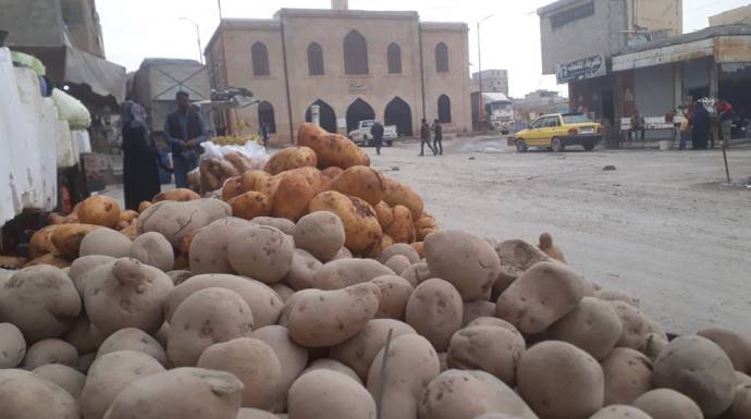وأشار إلى أن الحل الوحيد لنزول الأسعار هو فتح جميع الطرق والغاء الجمارك التي تفرضها الإدارة الكردية على سيارات شحن الخضار والمواد الغذائية القادمة من الداخل والساحل السوري.