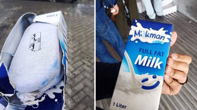 (الصورة المرفقة لعلبة حليب ميلك مان لصاحبها رامي مخلوف، مخبأ داخلها مخدرات، ضمن شحنة تم اكتشافها في مصر)